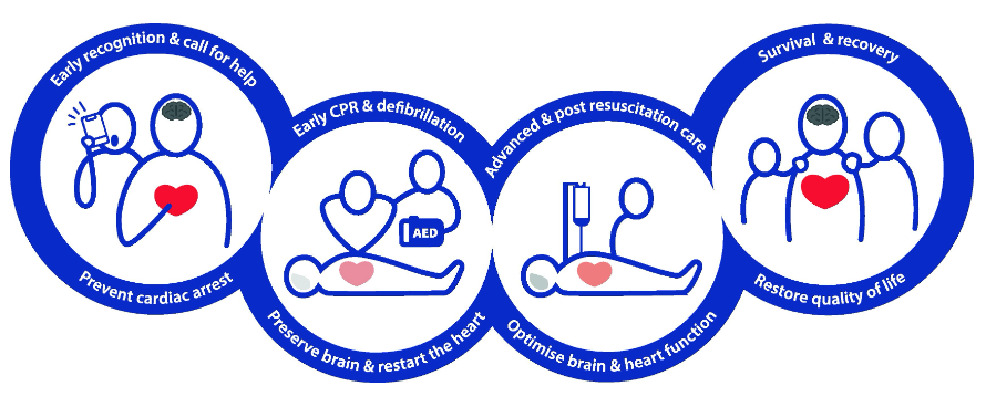L’ERC conserve une chaîne de survie à 4 maillons, mais en réorganise les priorités :
